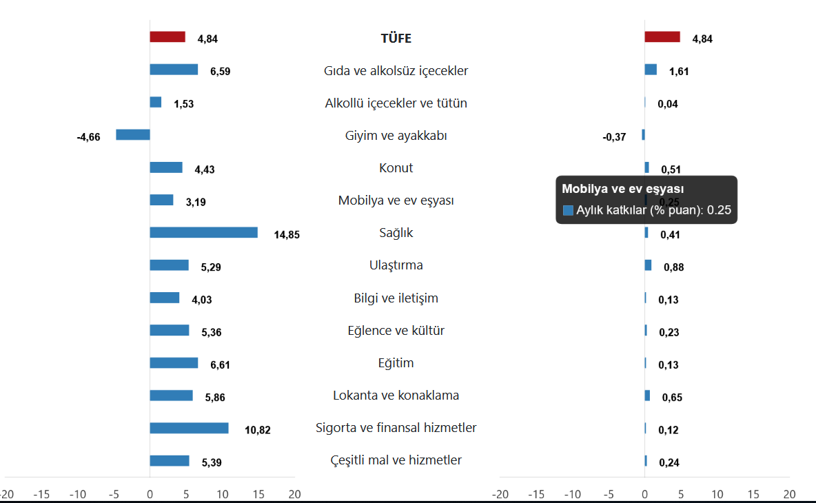 | Bir önceki aya göre değişim oranı | 4,84 | 5,03 | 6,70 |